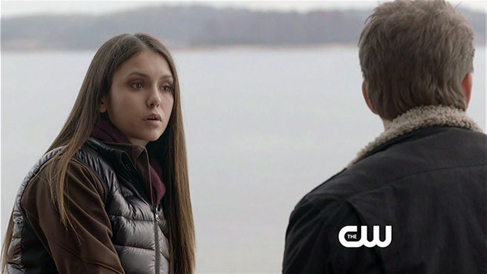 The clip features a conversation between Paul Wesley as Stefan and Nina Dobrev as Elena as Rebekah (Claire Holt) looks on. The episode itself is called “Down The Rabbit Hole.”