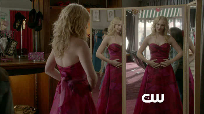 Elena’s going to steal the dress from Caroline. She and Rebekah are going to go all Mean Girl on Prom.