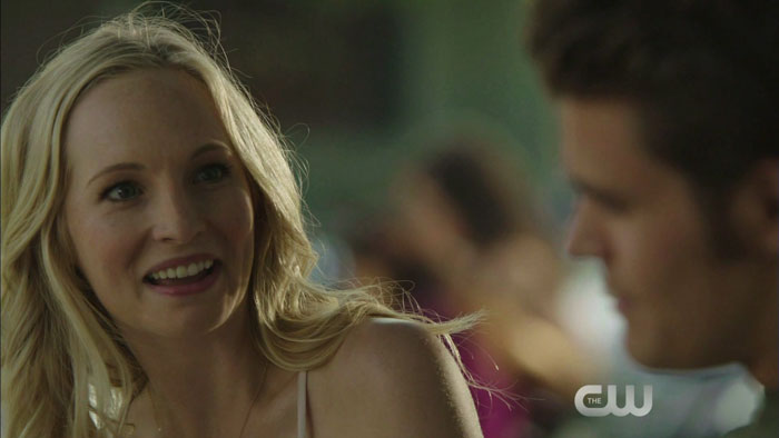 Thanks to Mr. Video, we have screen captures from a preview clip featuring the “Steroline” coupling of Caroline (Candice Accola) and Stefan (Paul Wesley). In the clip, Caroline is writing in the diary for Elena on the bench dedicated to her mother’s memory and Stefan visits.
