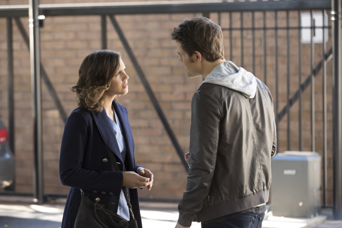 CLASS IS IN SESSION —Stefan (Paul Wesley) and Damon (Ian Somerhalder) attend an anger management support group looking for their next victim. Sybil (guest star Nathalie Kelley) is still alive and teaching a group of high school students who she’ll later use as leverage to get Caroline (Candice King) to locate a historical artifact that can be used against her. Meanwhile, Stefan and Damon continue their commitment to Cade as they test the morals of a young doctor, Tara (guest star Alexandra Chando). Zach Roerig also stars. Ian Somerhalder directed the episode written by Matthew D’Ambrosio (#808). Original airdate 1/13/2017.