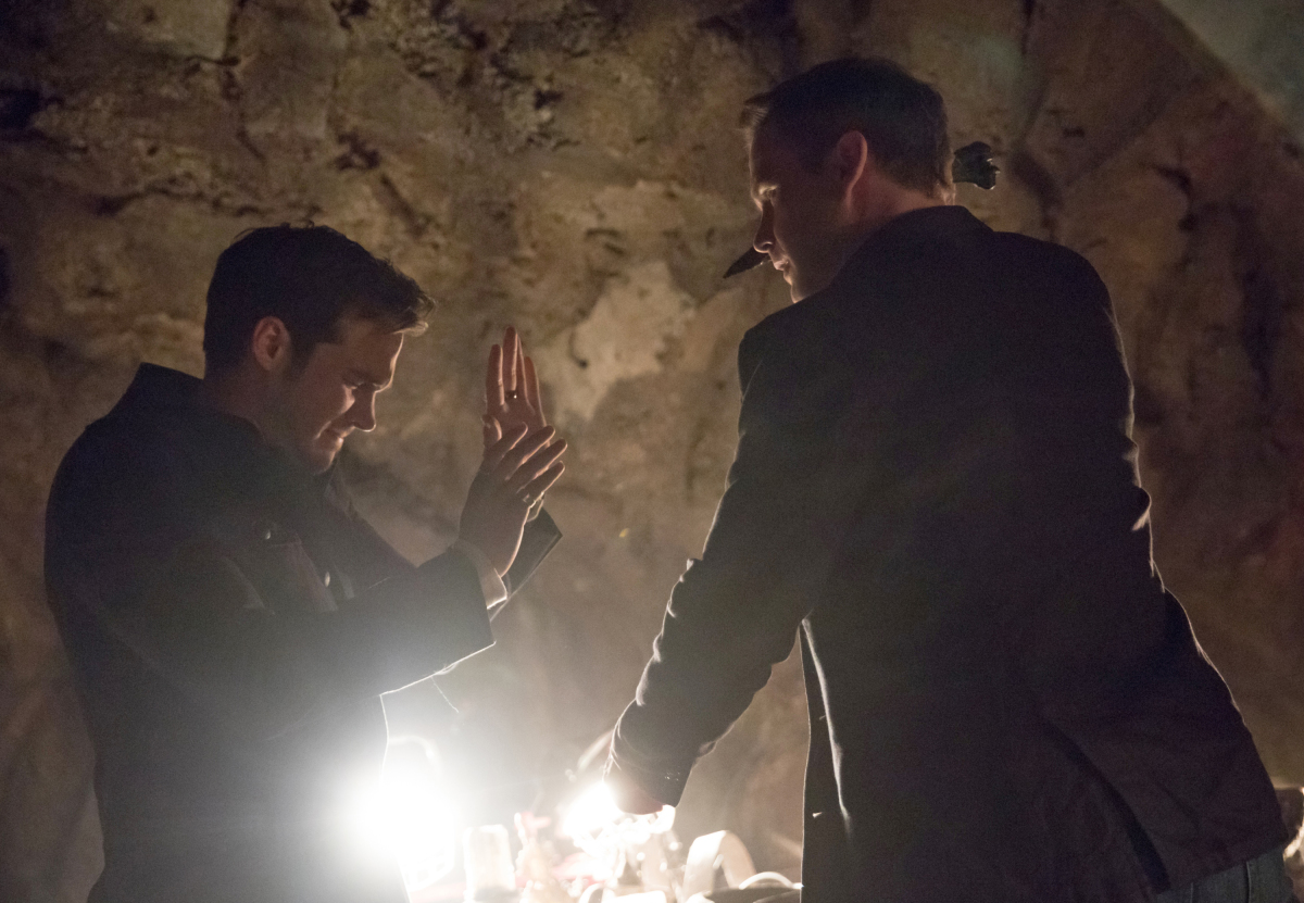 The Vampire Diaries -- "The Lies Are Going to Catch Up With You" -- Image Number: VD813a_0083.jpg -- Pictured (L-R): Chris Wood as Kai and Matt Davis as Alaric -- Photo: Bob Mahoney/The CW -- © 2017 The CW Network, LLC. All Rights Reserved.