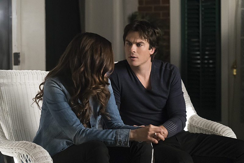 The Vampire Diaries -- "Because" -- Image Number: VD619a_0030.jpg -- Pictured (L-R): Nina Dobrev as Elena and Ian Somerhalder as Damon -- Photo: Tina Rowden/The CW -- © 2015 The CW Network, LLC. All rights reserved.