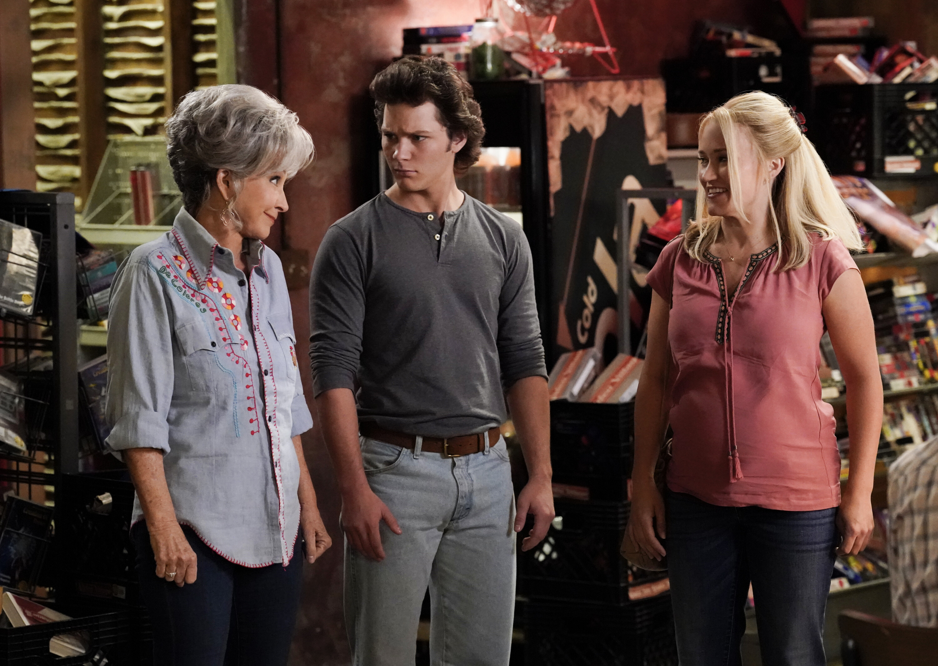 “An Ugly Car, an Affair and Some Kickass Football” – George Sr. is asked to help with the football team. Also, Mandy discovers Georgie and Meemaw’s secret business, on YOUNG SHELDON, Thursday, Nov 3 (8:00-8:31 PM, ET/PT) on the CBS Television Network, and available to stream live and on demand on Paramount+*. Pictured (L-R): Annie Potts as Meemaw, Montana Jordan as Georgie, and Emily Osment as Mandy. Photo: Robert Voets/CBS ©2022 CBS Broadcasting, Inc. All Rights Reserved.