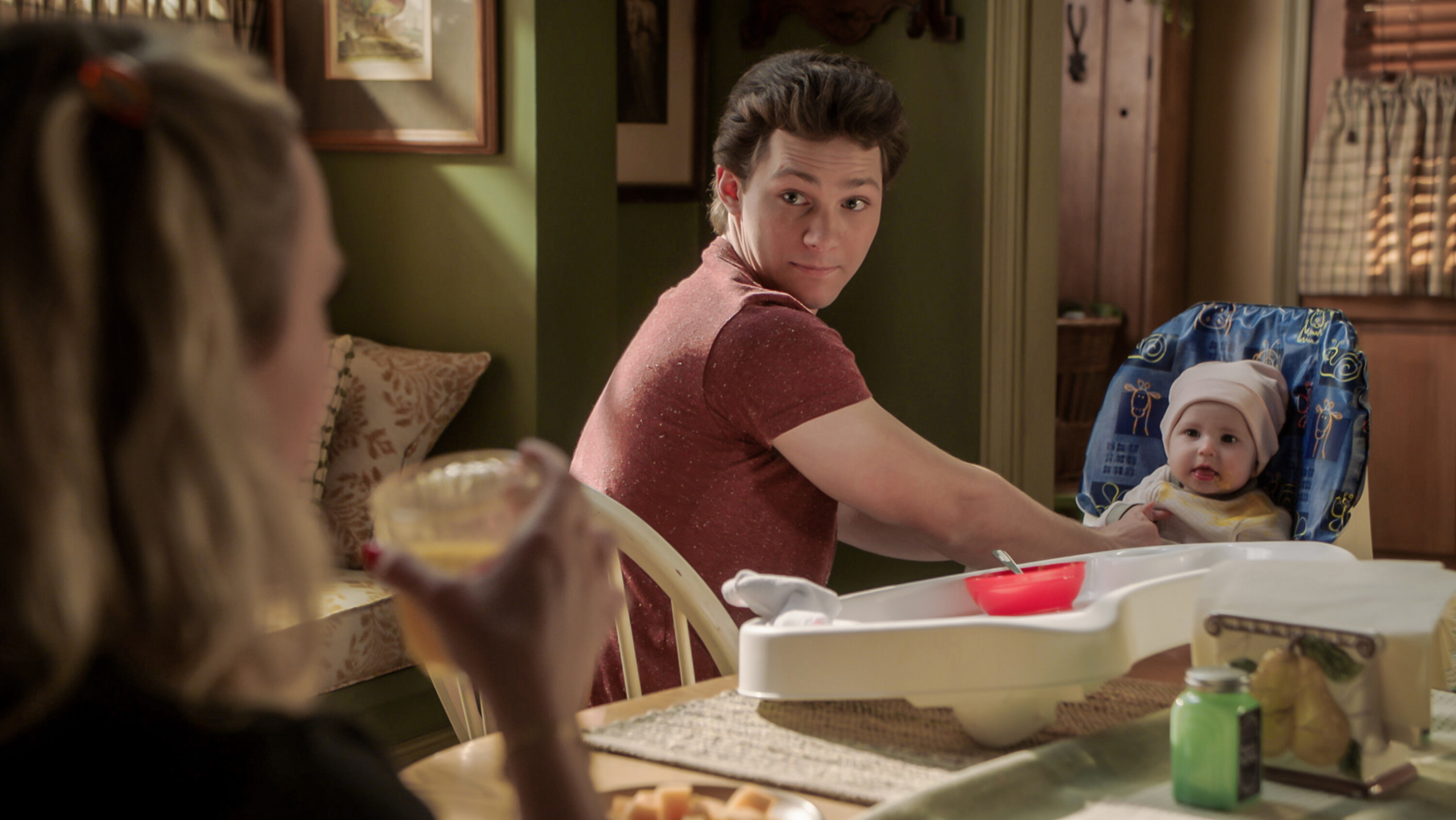 "A FANCY ARTICLE AND A SCHOLARSHIP FOR A BABY" - Sheldon’s published paper leads to a frenzy of grad school recruiting, and Georgie tries to speak more properly in front of his daughter, on YOUNG SHELDON, Thursday, April 25 (8:00-8:31 PM, ET/PT) on the CBS Television Network, and streaming on Paramount+ (live and on-demand for Paramount+ with SHOWTIME subscribers, or on-demand for Paramount+ Essential subscribers the day after the episode airs)*. Pictured (L-R): Montana Jordan as Georgie Photo: CBS ©2024 CBS Broadcasting, Inc. All Rights Reserved. Highest quality screengrab available.