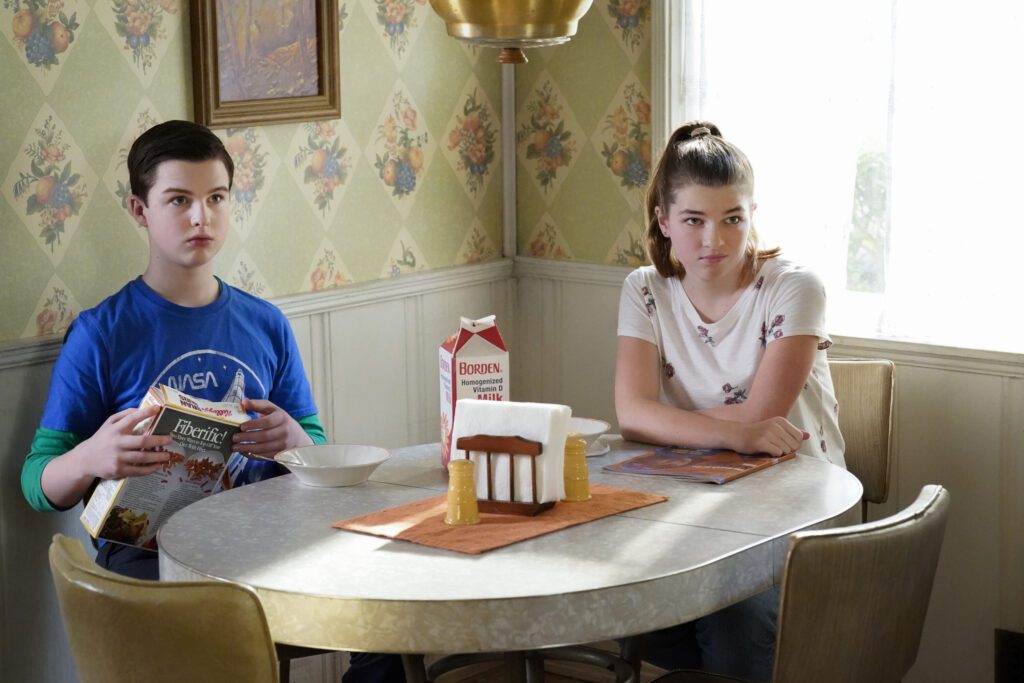 “A German Folk Song and an Actual Adult” – Georgie goes on a birthday date and Mary confronts Brenda about her relationship with George. Also, Sheldon takes an interest in Missy’s favorite TV show, on YOUNG SHELDON, Thursday, April 13 (8:00-8:31 PM, ET/PT) on the CBS Television Network, and available to stream live and on demand on Paramount+*. Pictured (L-R): Emily Osment as Mandy McAllister and Montana Jordan as Georgie Cooper. Photo Credit: Bill Inoshita / 2022 Warner Bros. Entertainment Inc. All Rights Reserved.